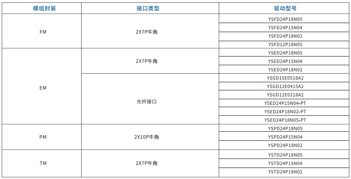 產(chǎn)品選型表
